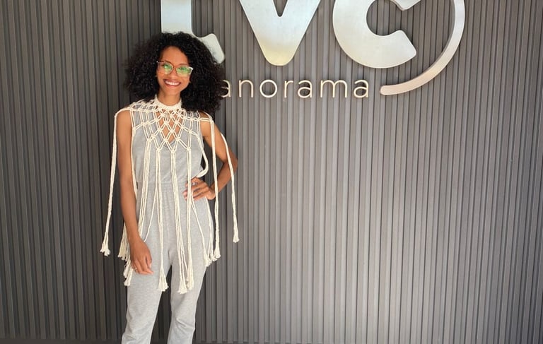 Começou pelo micro macramê, criando brincos, pulseiras e colares, até se arriscar em peças maiores e explorar técnicas complementares como o faber emballage. Hoje, sua arte também transforma resíduos têxteis em novas possibilidades, unindo sustentabilidade, criatividade e ancestralidade.